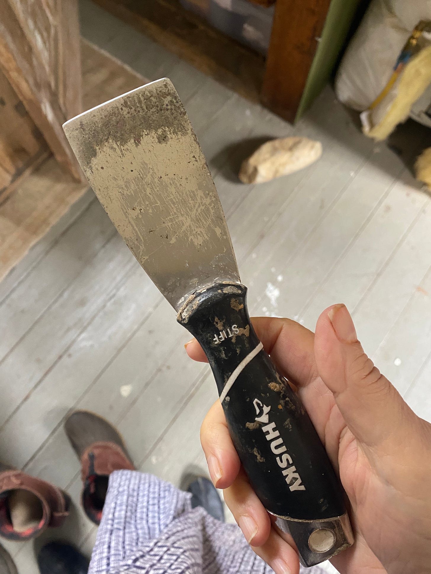 The Rocinante project has involved a lot of scraping. Scraping off the layers of time in paint peels, for hours, upon hours, upon hours. Two scrapers get used the most — be it scraping the paint inside the house in preparation for painting, scraping out the putty from each of the 24 sash windows I painstakingly restored the year we moved here — or indeed, scraping the exterior siding crackling with peeling paint — my current project.
